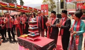 Acara juga diisi dengan pertunjukan Tortor yang diiringi gondang Batak, pemotongan kue serta penyematan Ulos oleh Bupati-Wakil Bupati Samosir Drs Rapidin Simbolon MM-Ir Juang Sinaga.