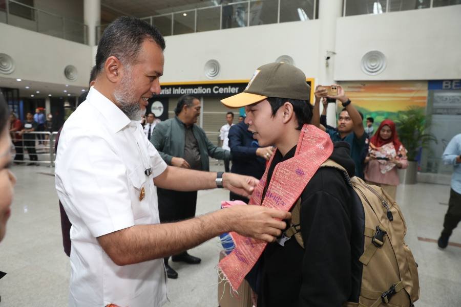 Deliserdang, POL | Wakil Gubernur (Wagub) Sumatera Utara (Sumut) Musa Rajekshah bersama Badan Pelindungan Pekerja Migran Indonesia (BP2MI) menyambut kedatangan Pekerja Migran Indonesia (PMI) di pintu keluar kedatangan internasional Bandara Kualanamu, Kamis (20/4/2023).