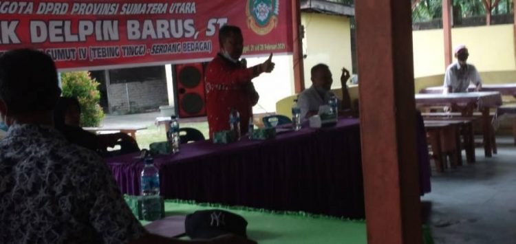 Tebing Tinggi, POL | Anggota DPRD Sumut dari Komisi C Delpin Barus ST Melakukan Reses II di Wisma Barita Horas jalan Danau Toba Kelurahan Lubuk Raya Kecamatan Padang Hulu Kota Tebing Tinggi, Kamis (25/2/2021).