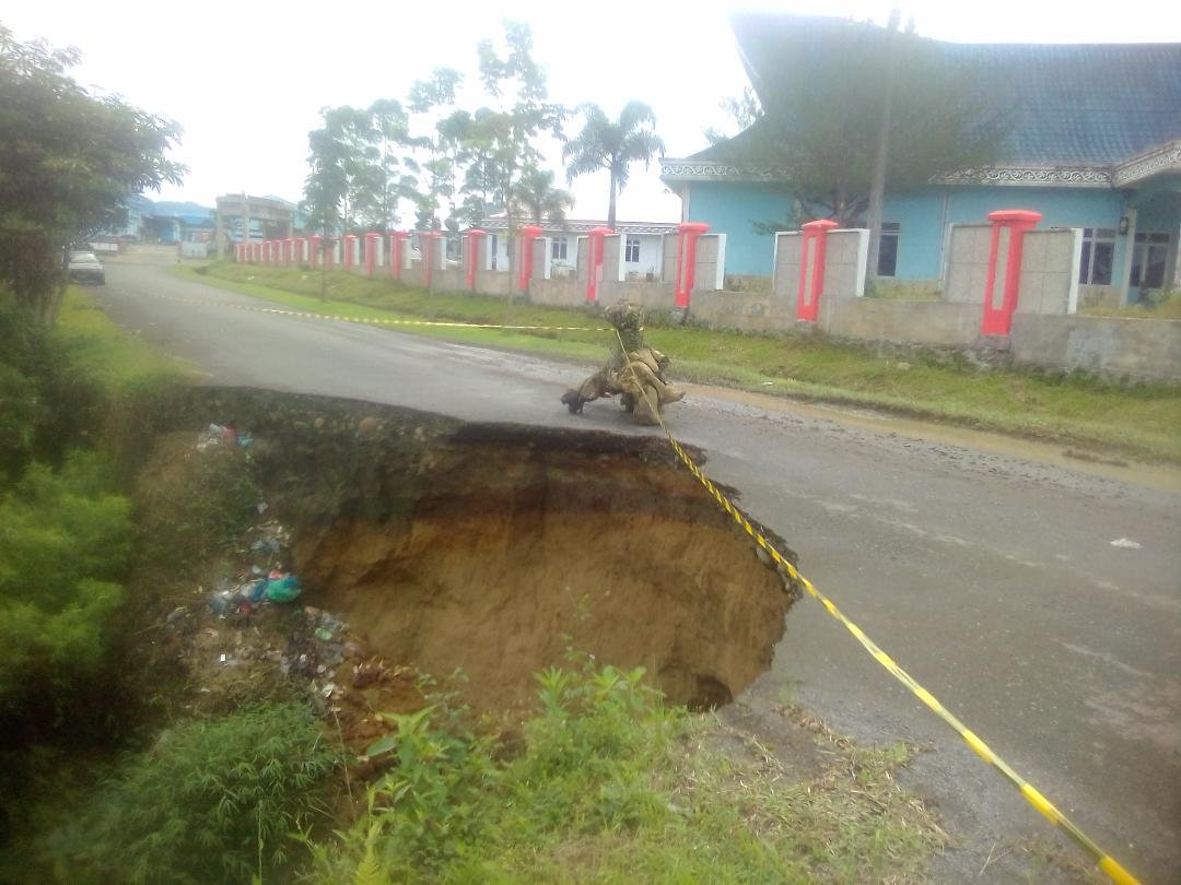 Sebab jalan ini sudah amblas 75%,hingga menjebak pengguna jalan, bahkan berdampak mengancam perkantoran di dekat longsoran ini