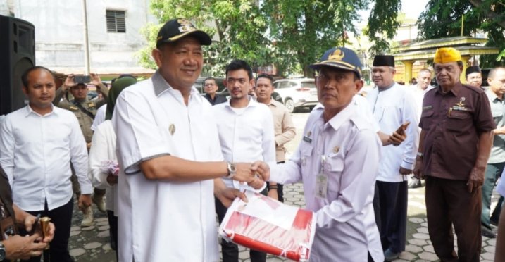 Langkat, POL | Jelang hari kemerdekaan Republik Indonesia 17 Agustus 2023, Plt Bupati Langkat H.Syah Afandin SH membagikan 10 juta bendera merah putih, Rabu (2/8/2023).