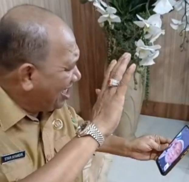 Langkat, POL | Di tengah-tengah jadwal yang begitu padat Plt.Bupati Langkat H.Syah Afandin, SH menyempatkan waktu untuk menyapa TPHD Kabupaten Langkat H.Husnul Abrar, ST dan Ibnul Mubarak melalui panggilan Vidio Call, dari Rumah Dinas Bupati Langkat, Senin (26/6/2023).