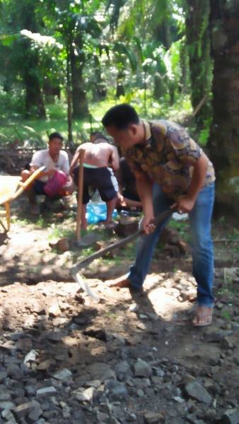 “Gotong royong di dusun VI dan VIII ini kita lakukan karena selama ini jalan menuju Masjid Al Maulhusna sulit dilalui kenderaan roda dua akibat rusak seoama musim penghujan beberapa bulan belakangan ini,”  terang Katri.