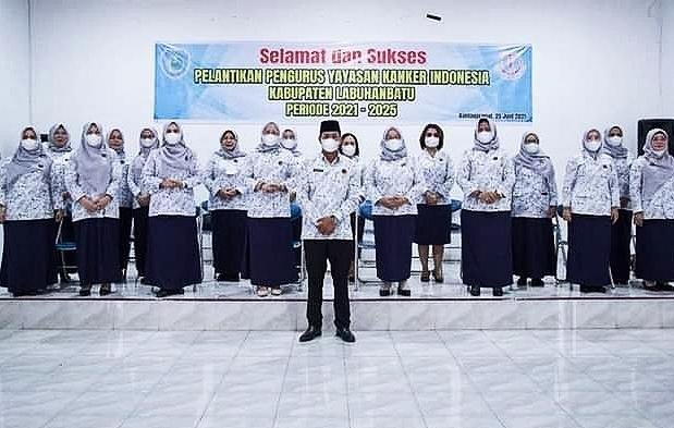 Labuhanbatu, POL | Pengurus dan Ketua Yayasan Kanker Indonesia (YKI) Cabang Kabupaten Labuhanbatu periode 2021-2025 resmi dilantik oleh Ketua YKI Provinsi Sumatera Utara Ny. Nawal Edy Rahmayadi secara virtual di aula gedung PKK Kabupaten Labuhanbatu Jalan Wr. Supratman Rantauprapat, Jum’at (25/6/2021).