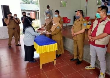 Labuhanbatu, POL |Kepala Dinas Pemberdayaan perempuan dan perlindungan anak kabupaten Labuhanbatu Hj.Tinur Bulan Harahap,SKM,M.Kes mengkukuhkan Pengurus Perlindungan Anak Terpadu Berbasis Masyarakat (PATBM) Desa Tanjung Harapan Kecamatan Pangkatan di Aula Desa Tanjung Harapan, Selasa (26/1/2021).