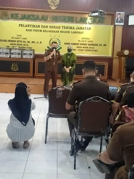 Langkat, POL | Serah terima jabatan (Sertijab) Kasi Pidum Kejaksaan Negeri (Kejari) Langkat, dilaksanakan di aula Kejari Langkat sekitar pukul 10.30 Wib, Selasa (13/7/2021).