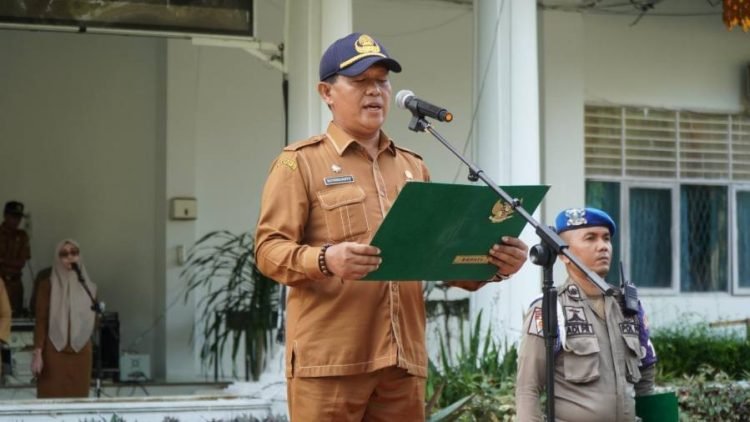 Langkat, POL | Plt Bupati Langkat H.Syah Afandin SH di wakilkan oleh Staf Ahli Bid Pembangunan Ekonomi dan Keuangan H. Sutrisuanto, S.Sos, M,Si menjadi Pembina Apel Gabungan Aparatur Sipil Negara (ASN) di Lingkungan Pemerintah Kabupaten Langkat, bertempat di Halaman Kantor Bupati Langkat,Senin (11/12/2023).