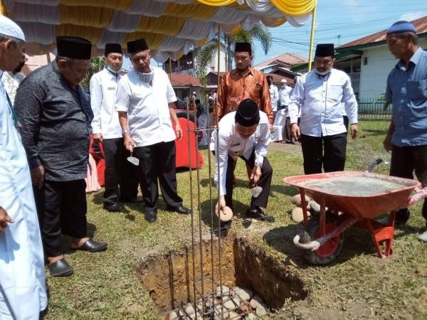 Peletakan batu pertama, dilakukan Sekdakab Langkat Dr. H. Indra Salahuddin mewakili Bupati Langkat Terbit Rencana PA, Rabu (3/6/2020).
