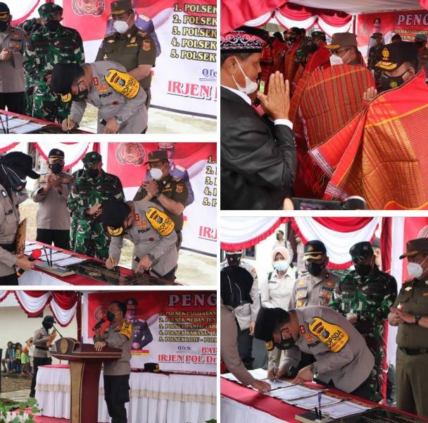 Medan, POL | Kapolda Sumut Irjen Pol Drs RZ Panca Putra Simanjuntak, MSi meresmikan pembentukan 5 Polsek baru. Peresmian ini dilaksanakan di Kec. Parbuluan, Kab. Dairi, Kamis (29/04)