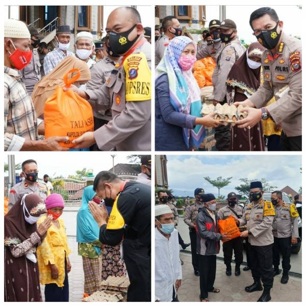 Sebanyak 250 paket sembako yang merupakan bakti sosial Kapolda Sumut ini diberikan kepada warga kurang mampu yang tinggal disekitar Masjid Raya Taqwa Parapat Kabupaten Simalungun.