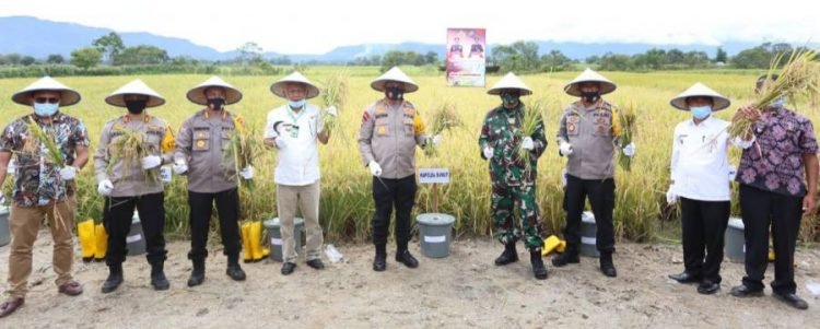 Toba, POL | Kapolda Sumatera Utara Irjen Pol Martuani Sormin MSi beserta Pejabat Utama (PJU) Poldasu menghadiri panen raya masyarakat Desa Lumban Holbung Kecamatan Uluan Kabupaten Toba, Jumat (24/7/2020). Kehadirannya itu merupakan bagian dari kunjungan kerjanya di Kabupaten Toba.