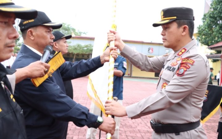 Pelantikan PAMK ditandai dengan penyerahan Pataka dan penyerahan SK serta Kartu Anggota kepada Pengurus PAMK Polres Simalungun.