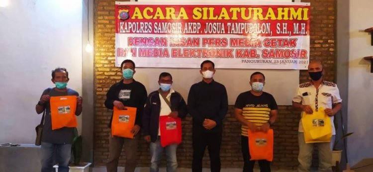 Samosir, POL | Kapolres Samosir, AKBP Josua Tampubolon SH MH yang baru bertugas sejak 8 Januari 2021 lalu, menggelar silaturahmi dengan puluhan insan pers di Pandopo Sarja Arya Racana Rumah Dinas Kapolres Samosir, Sabtu (23/1/2021).