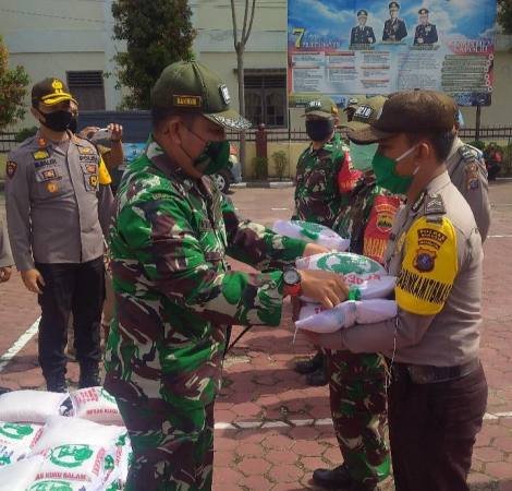 Sebagai upaya untuk menjaga kesehatan dan kebugaran serta mencegah penularan wabah Virus Covid-19 pada anggota yang bertugas di lapangan, Kapolres Samosir bersama Dandim 0210 kembali solid bersinergi dengan bantuan sembako berupa beras kepada para anggota.