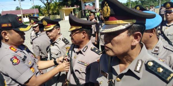 Simalungun, POL | Kepala Kepolisian Resor Simalungun AKBP Heribertus Ompusunggu, S.I.K.,M.Si., pimpin serah terima jabatan Wakapolres Simalungun, Kabagren Polres Simalungun, Kabag Sumda Polres Simalungun, Kasat Reskrim Narkoba Polres Simalungun, Kasat Sabhara Polres Simalungun, Kapolsekta Tanah Jawa, Kapolsek Raya dan Kapolsek Raya Kahean Polres Simalungun. Selasa, (29/10/2019)di Lapangan Apel Mapolres Simalungun Pematang Raya.