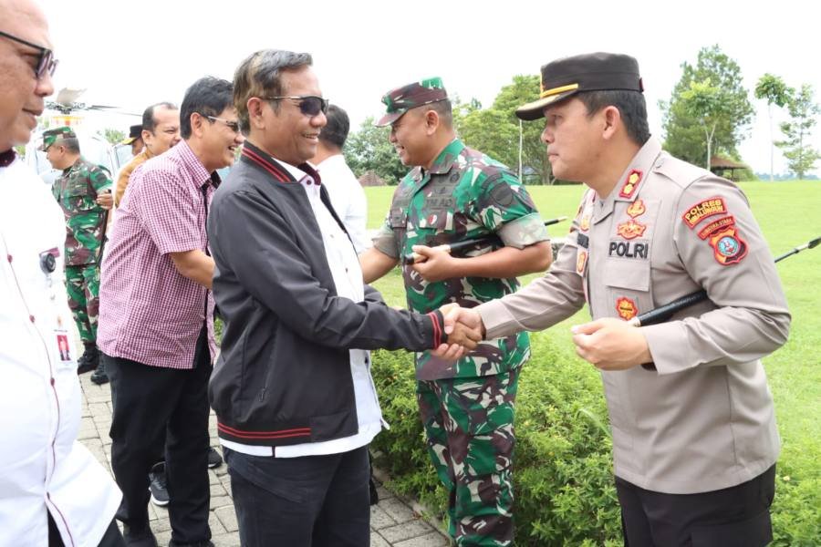 Simalungun, POL | Kapolres Simalungun AKBP Ronald F.C Sipayung, S.H., S.I.K., M.H., bersama Bupati Simalungun Radiapoh Hasiholan Sinaga serta Forkopimda menyambut kehadiran Menteri Koordinasi Bidang Politik, Hukum dan Keamanan (Menkopolhukam) Republik Indonesia Mahfud MD, di Hotel Niagara Parapat, Kecamatan Girsang Sipangan Bolon, Simalungun, Sumut, Rabu (22/2/2023).