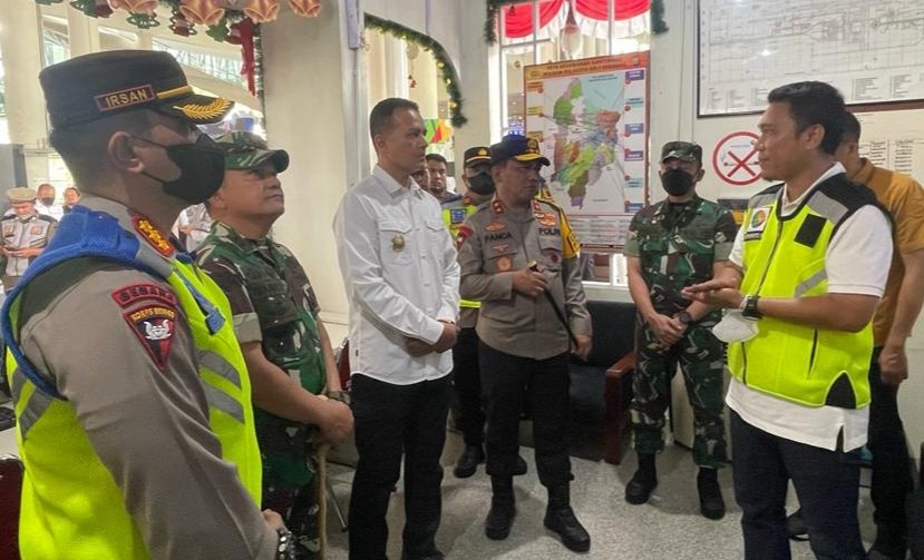Deli Serdang, POL | Kapolresta Deli Serdang Kombes Pol Irsan Sinuhaji, SIK, MH, mendampingi Forkopimda Sumatera Utara meninjau kesiapan Pos Terpadu Ops Lilin Toba 2022 Bandara KNIA di wilayah hukum Polresta Deli Serdang, Sabtu (24/12/2022).