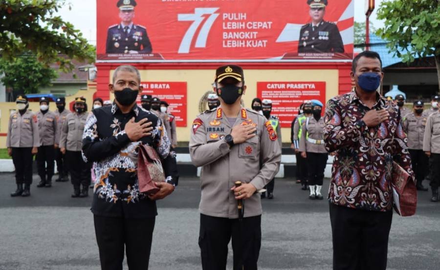 Deli Serdang, POL | Kapolresta Deli Serdang Kombes Pol Irsan Sinuhaji, SIK, MH, menjadi Inspektur Upacara Korps Rapor kenaikan pangkat Pengabdian personel Polresta Deli Serdang TMT 1 September 2022, di Lapangan Apel Polresta Deli Serdang, Kamis (01/09/2022).