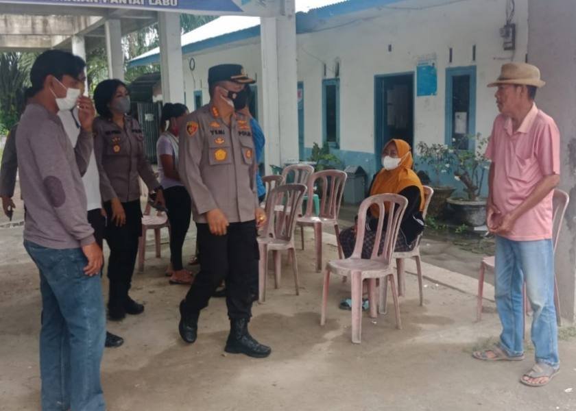 Pelaksanaan Peninjauan Vaksinasi Massal tersebut Kapolresta Deli Serdang di dampingi Kabag Sumda Polresta Deli Serdang Kompol Dr Sri Min Pinem dan Camat Pantai Labu, Rahmad A.Siregar S.STP.