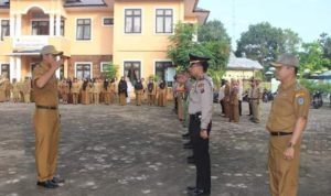 Tebingtinggi, perjuanganonline | Upacara gabungan se-Kecamatan Rambutan dilaksanakan dan dihadiri seluruh Aparatur Sipil Negara (ASN), petugas dan para kepala lingkungan (kepling), Senin (22/10/2018).