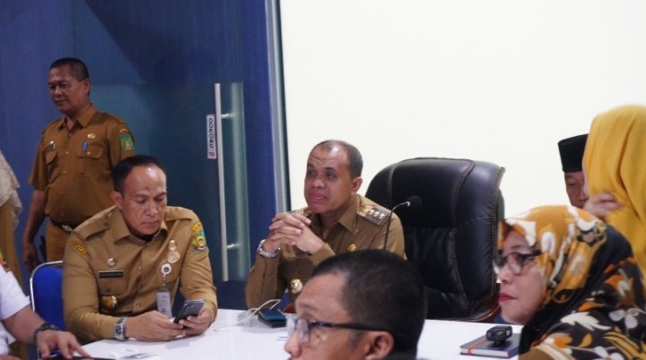 Stabat, POL | Pemerintah Pusat lewat Kemendagri melaksanakan Zoom meeting Pengendalian Inflasi Daerah Tahun 2024. Rapat tersebut diikuti oleh Kabupaten/Kota Se Indonesia. Pj Bupati Langkat H.M. Faisal Hasrimy mengikuti jalannya zoom meeting tersebut didampingi oleh Asisten Ekbangsos, Inspektur dan beberapa kepala dinas dan kepala bagian pemerintah Kabupaten Langkat bertempat di Ruang Rapat LCC, Senin (25/03/2024).