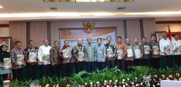 Wali Kota Sibolga Drs. H.M. Syarfi Hutauruk, MM bersama perwakilan 85 kabupaten/kota penerima hibah dan Dirjen Cipta Karya Danis Hidayat Sumadilaga melakukan penandatangan naskah dan berita acara serah terima hibah atau alih status BMN di Auditorium Kementerian PUPR Jalan Raden Patah No.11 Jakarta Selatan, pada Rabu (25/09/2019).