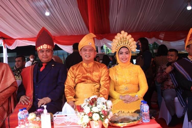 Labuhanbatu, POL | Bupati Labuhanbatu dr. H. Erik Adtrada Ritonga, MKM, didampingi Ketua Tim Penggerak PKK Kabupaten Labuhanbatu dr. Hj. Maya Hasmita Erik Adtrada SpOG, MKM, mengenakan pakai adat saat menghadiri hari jadi Kota Medan ke-432 Tahun, di Jalan Balai Kota, Kota Medan, Sumatera Utara, Jumat (01/07/2022).