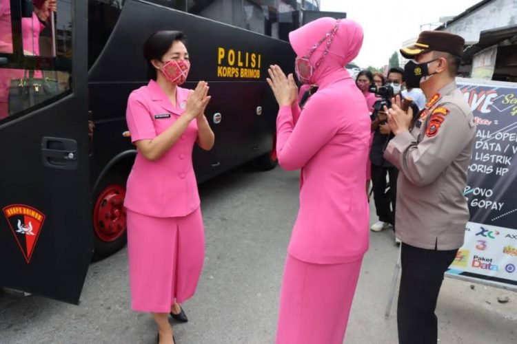 Deli Serdang, POL | Ketua Bhayangkari Daerah Sumatera Utara Ny. Rita Panca Putra dan Wakil Ketua Bhayangkari Daerah Sumatera Utara Ny.Vitri Dadang Hartanto beserta Pengurus Daerah Bhayangkari Sumatera Utara melaksanakan kunjungan kerja ke Polresta Deli Serdang, Kamis (02/06/2022).