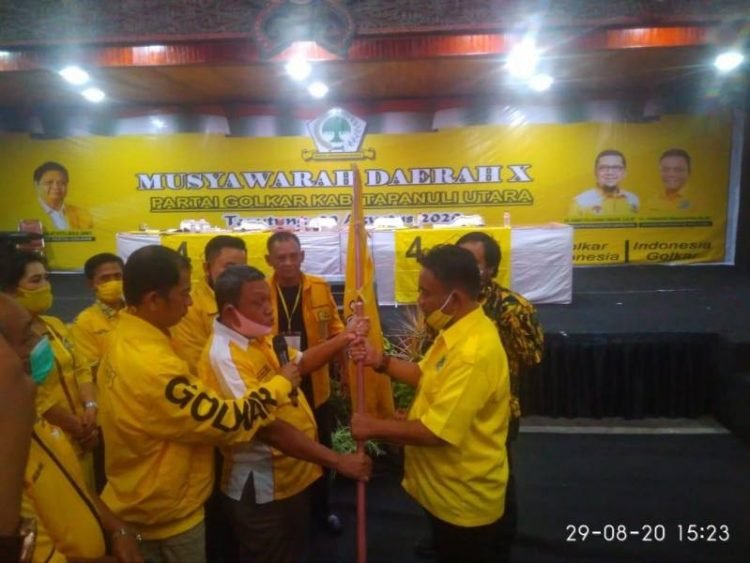 Tarutung, POL | Ketua DPD Partai Golkar Taput FL.Fernando Simanjuntak yang kembali terpilih secara aklamasi pada Musda digelar di Sopo Partukkoan Tarutung, Sabtu (29/08/2020) menegaskan, ia bersama jajarannya bertekad bulat untuk menjadikan kejayaan seperti pernah dialami pada masa lalu. Ketika itu Bupati Taput dan Ketua DPRD juga dari Partai Golkar.