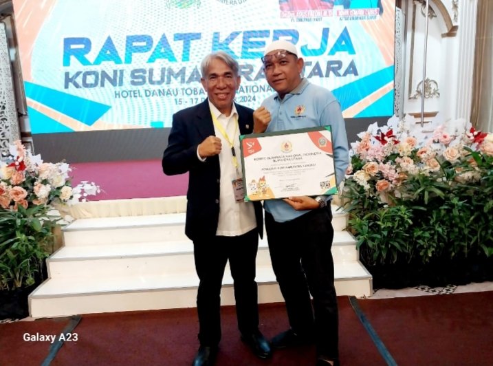 Medan, POL | Ketua Umum Komite Olahraga Nasional Indonesia (KONI) Langkat H Syah Afandin SH mendapat penghargaan dari KONI Sumatera Utara sebagai Pembina Cabang Olahraga yang melahirkan Atlet berprestasi pada perhelatan PON XXI/2024 Aceh-Sumatera Utara.