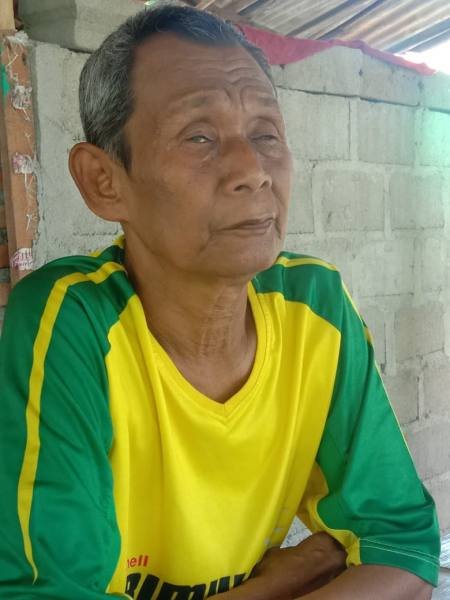 Asahan, POL | Ngadiman (59) alias pak De kedua matanya mengalami kebutaan akibat terkena abu kotel saat bekerja merawat jalan di tempat penimbangan dan pengumpulan tandan buah sawit (Ramp) Podomoro milik Geng di Aek Kuasan.