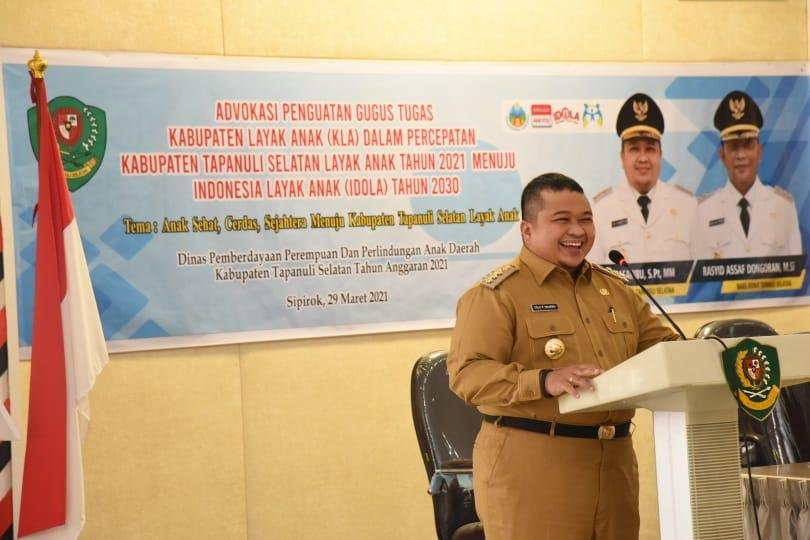 Tapsel, POL | Bupati Tapanuli Selatan (Tapsel) Dolly Pasaribu, S.Pt, MM menegaskan Kabupaten Layak Anak (KLA) harus selalu berkoordinasi dengan pemangku kepentingan, agar hak anak dapat terpenuhi. Karena anak merupakan investasi dimasa mendatang,juga sebagai penerus bangsa yang tangguh dan berkualitas.