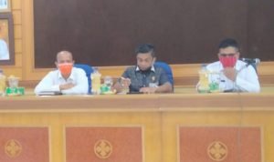 Rombongan disambut Bupati Langkat Terbit Rencana PA melalui Asisten ADM Umum Musti Sitepu bersama sejumlah Pejabat Pemkab Langkat, di ruang Pola Kantor Bupati Langkat, Stabat, Rabu (29/7/2020).