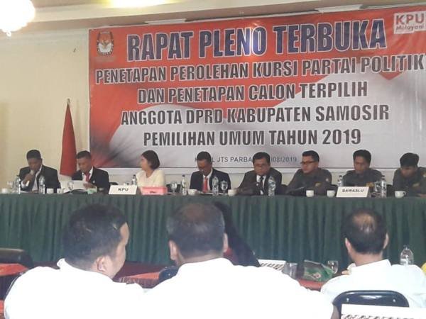 Penetapan caleg terpilih ini dilakukan dalam Rapat Pleno Terbuka di Hotel JTS Parbaba, Kecamatan Pangururan, Senin, 12 Agustus 2019.