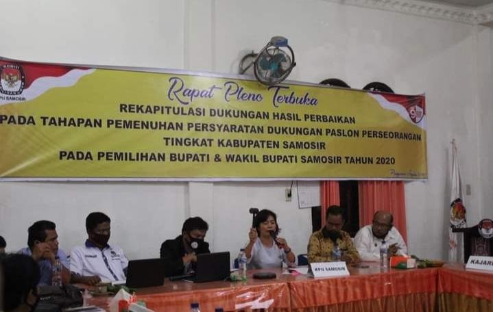 Ketua KPU Samosir, Ika Rolina Samosir mengatakan, berdasarkan hasil rapat pleno rekapitulasi hasil verifikasi faktual tahap perbaikan, dari 4.965 dukungan yang dilakukan verifikasi faktual, sebanyak 4.480 dukungan dinyatakan memenuhi syarat.