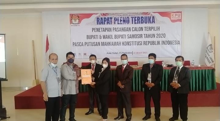 Hal ini sesuai dengan Surat Keputusan Komisi Pemilihan Umum (KPU) Kabupaten Samosir Nomor 16/PL.02.7-Kpt/1217/KPU-Kab/III/2021 tentang Penetapan Pasangan Calon Bupati dan Wakil Bupati Terpilih dalam Pemilihan Bupati dan Wakil Bupati Samosir tahun 2020.