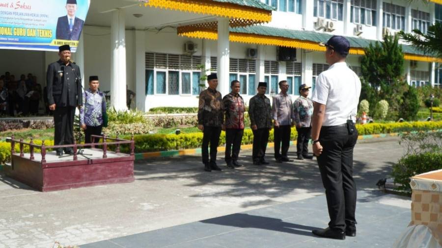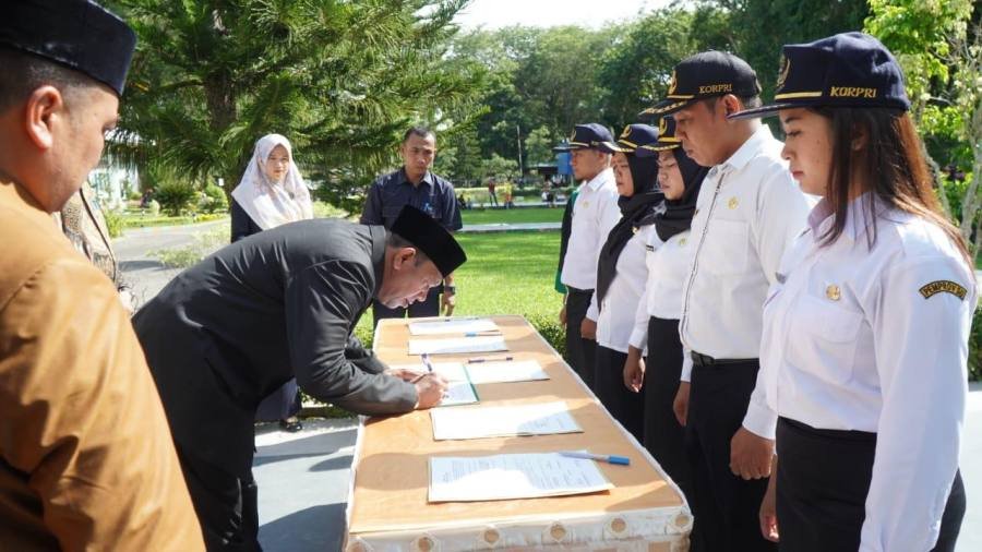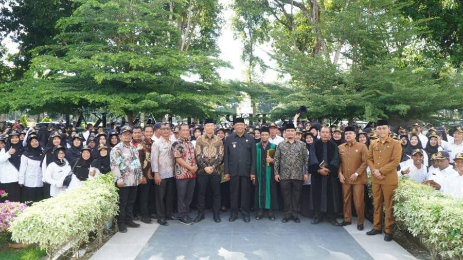 Plt Bupati Langkat H.Syah Afandin, SH menyerahkan Surat Keputusan Pengangkatan dan Pengambilan Sumpah Pegawai Pemerintah dengan Perjanjian Kerja (PPPK) Jabatan Fungsional Tenaga Guru dan Tenaga Teknis di Lingkungan Pemerintah Kabupaten Langkat, bertempat di Halaman Kantor Bupati, Kamis 20 Juli 2023.