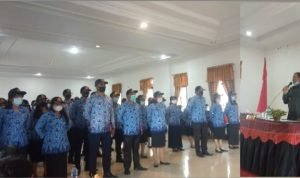 Samosir, POL | Bupati Samosir, Rapidin Simbolon, melakukan pengambilan sumpah janji 66 Calon Pegawai Negeri Sipil (CPNS) menjadi Pegawai Negeri Sipil (PNS), di Aula Hotel Dainang, Pangururan, Kamis (10/9/2020).