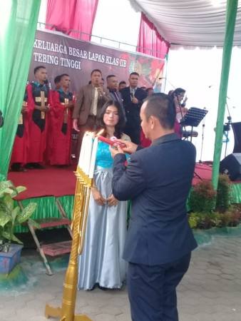 Dalam ibadah Natal, para pegawai dan warga binaan menampilkan kidung pujian sangat suka cita dan ibadah juga disertai penyalaan lilin.(AR)