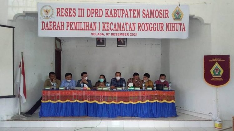 Samosir, POL | Sebanyak 8 anggota DPRD daerah pemilihan 1 Kecamatan Pangururan dan Kecamatan Ronggurnihuta mengadakan pertemuan dengan warga di masa reses III di Aula Kecamatan Ronggurnihuta, Selasa 7 Desember 2021.