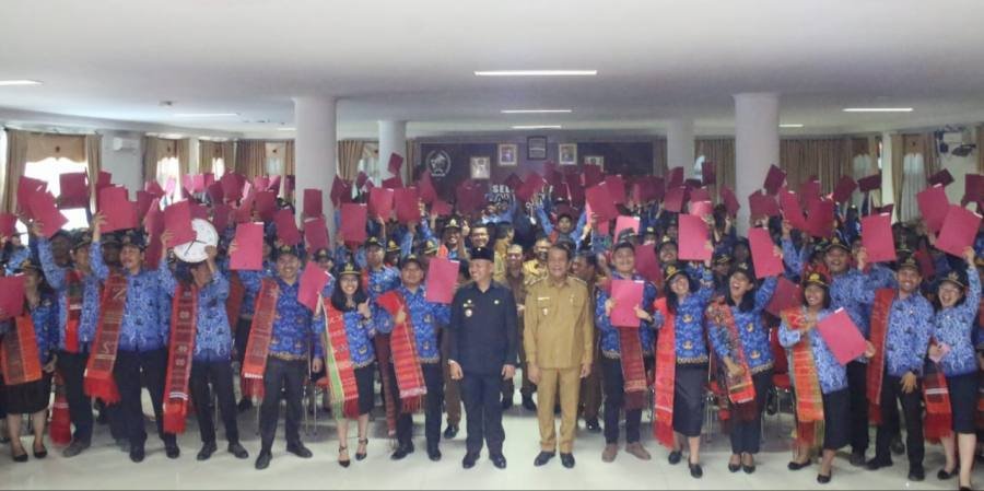 Penyerahan SK CPNS menjadi PNS dilakukan Bupati Tapanuli Utara Drs. Nikson Nababan, M.Si didampingi Wakil Bupati Tapanuli Utara Sarlandy Hutabarat, SH, Kepala BPKSDM Taput Benyamin Nababan, S.Pd dan beberapa pimpinan OPD bertempat di aula Martua Kantor Bupati Taput , Senin (03/04/2023).