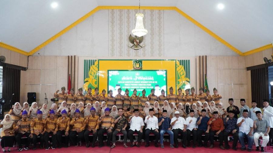 Stabat, POL | Pj Bupati Langkat, H.M.Faisal Hasrimy AP,M.AP melepas Kafilah Kabupaten Langkat untuk mengikuti MTQ tingkat Provinsi Sumatera Utara Tahun 2024, bertempat di Pendopo Jentera Malay Rumah Dinas Bupati Langkat Stabat, Selasa (18/6/2024).