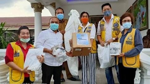 Rantauprapat, POL | Pengurus Lion Club Kabupaten Labuhanbatu menyerahkan bantuan Alat Pelindung Diri (APD) Standart Resmi WHO kepada Pemkab Labuhanbatu, yang diterima langsung Bupati H Andi Suhaimi Dalimunthe didampingi Direktur RSPD Rantauprapat dr Syafril SpB di rumah dinas, Selasa (7/4/2020).