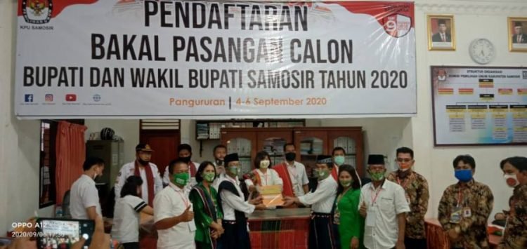 Menurut Barus, pasangan ini menjadi peserta ketiga bapaslon dan pertama dari jalur perseorangan yang mendaftarkan diri dengan menyerahkan syarat pencalonan kepada KPU Kabupaten Samosir.