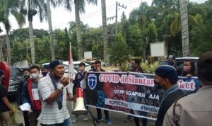 Kordinator aksi pun geram karena mereka sudah menunggu sekian lama. May Lhuter, beserta massa, juga melakukan tabur bunga yang menandakan, bahwa GTPP Covid – 19 sudah mati.