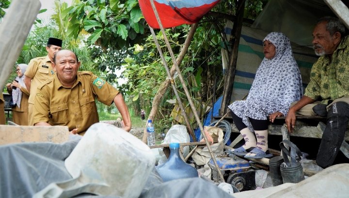 Langkat, POL | Plt Bupati Langkat H.Syah Afandin SH meninjau bedah rumah milik Satar PA (80) dan ibu poniah di Susun 1 Kepala Sungai Desa Suka Mulya Kecamatan Secanggang, Senin (13/3/2023).