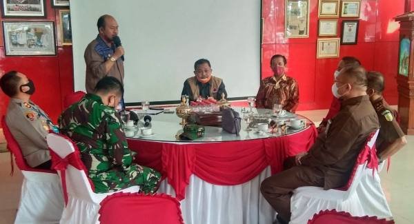 Tarutung, POL | Bupati Taput Drs. Nikson Nababan, MSi bersama Forum Komunikasi Pimpinan Daerah (Forkopimda) Kabupaten Taput tatap muka dengan Mayjend (Purn) TNI selaku LO GTPN PP Covid-19 Pusat untuk Wilayah Provinsi Sumatera Utara di rumah dinas Bupati, Kamis (04/06/2020).