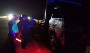 Sergai, POL | Diduga korsleting, mobil truk trado colt diesel plat BK 8087 TL terbakar di ruas Jalan Tol Medan-Tebing Tinggi, tepatnya Km 74-200 Jalur Ambon Desa Cempedak Lobang, Kecamatan Sei Rampah Kabupaten Serdang Bedagai (Sergai), Sumatera Utara (Sumut), Senin (15/2/2021) pukul 22.45 WIB.