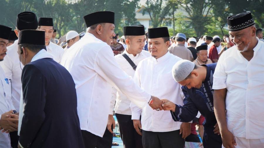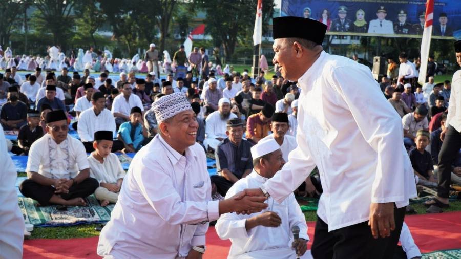 Langkat, POL | Plt Bupati Langkat H.Syah Afandin,SH melaksanakan Sholat Idul Adha 1444 H, bertempat di Lapangan Alun-Alun T. Amir Hamzah Stabat, Kamis 29 Juni 2023.