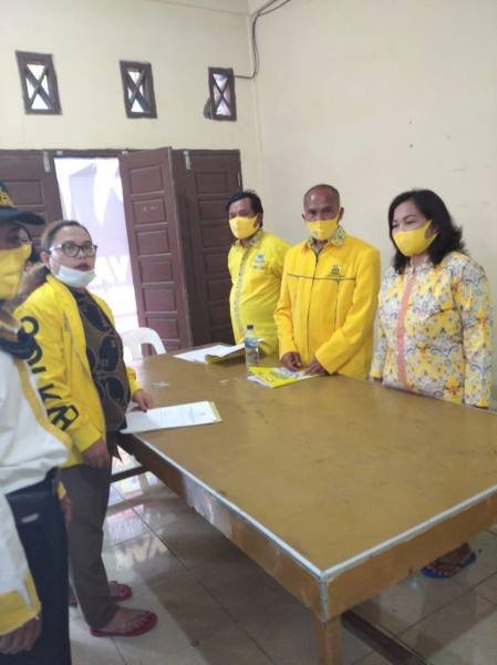 Rosinta mendatangi kantor DPD Golkar Samosir di jalan lintas Pangururan-Simanindo, Desa Parsaoran I, untuk menyerahkan berkas pendaftaran sebagai calon Ketua DPD Golkar Samosir periode 2020-2025, Jumat (28/8/2020).